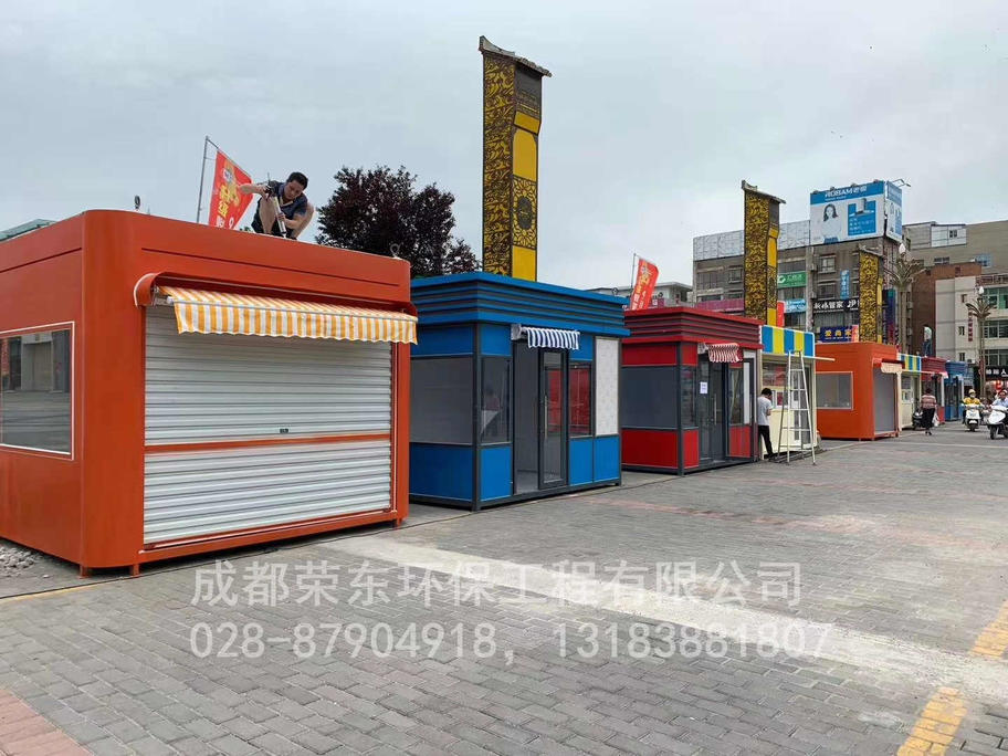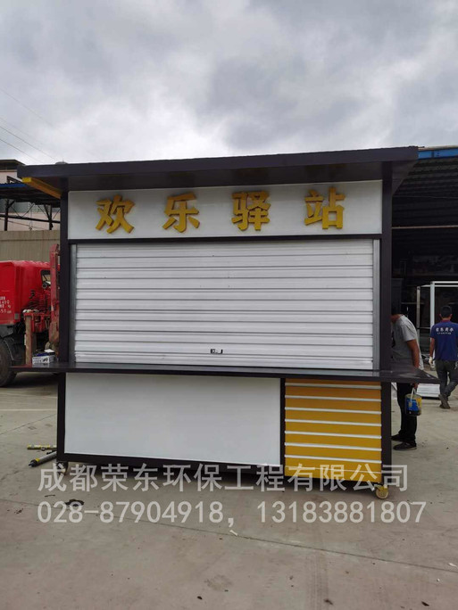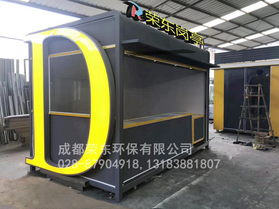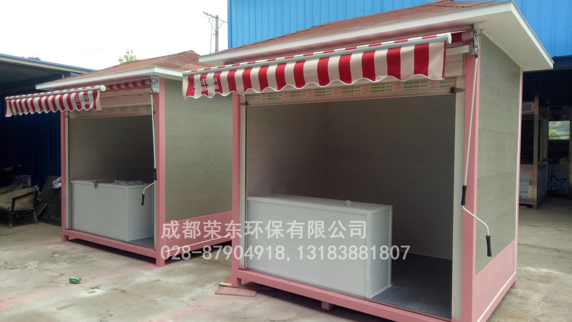5、售货亭岗亭内壁:中间为方通架,内外衬木板;