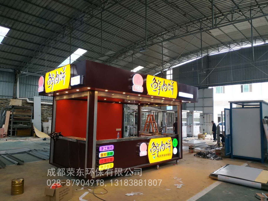 6、售货亭底座:底层为角钢架,中间为木板 表层为防滑胶板;