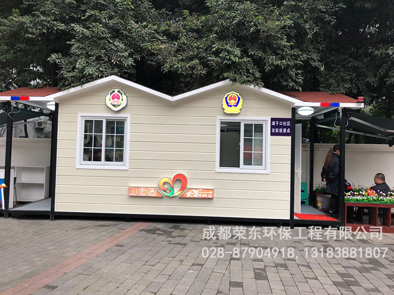 成都荣东环保工程有限公司,多年环保厕所、岗亭生产经验。专注岗亭设计生产,欢迎来电咨询订购:13183887658 汪先生,13183881807 龚女士,我们竭诚为您服务!