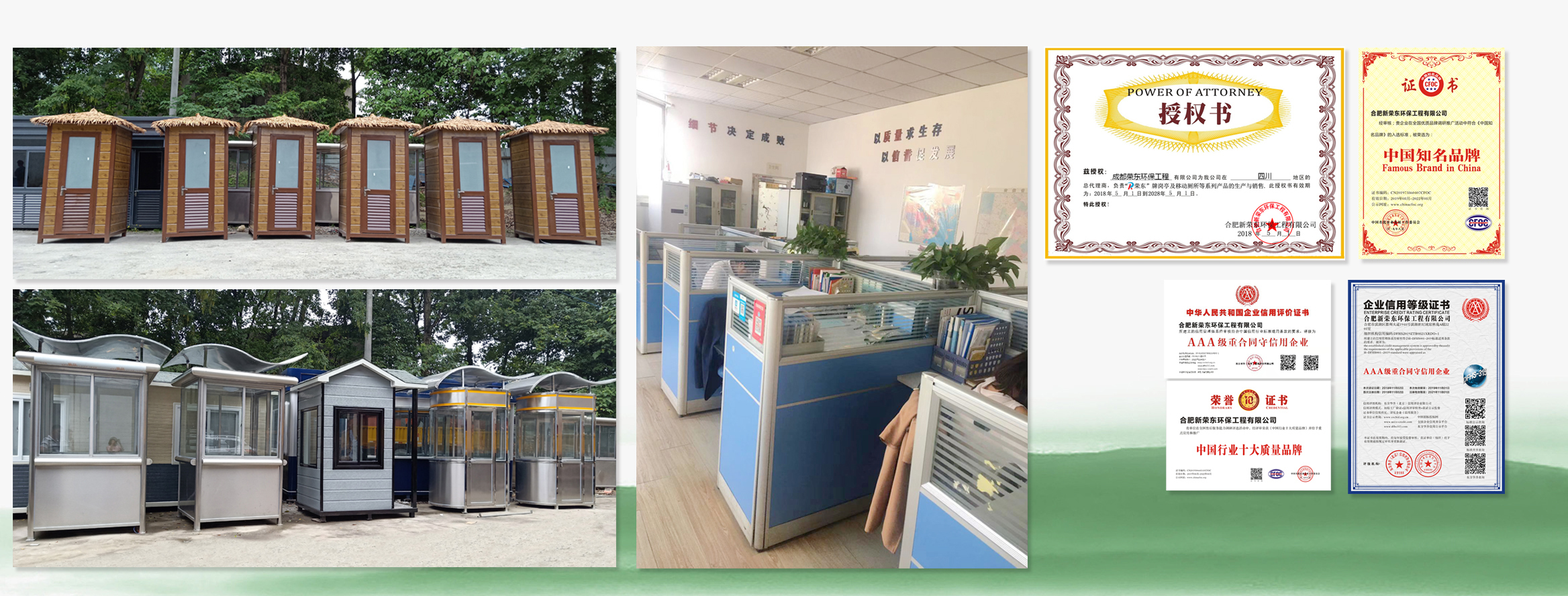成都荣东环保工程有限公司“荣东”是国内较早生产智能移动房屋、环保厕所的厂家,专业生产各种:景区环保厕所、移动公厕、移动公共卫生间、装配式公厕、工地.工厂厕所。各种:不锈钢岗亭、钢结构岗亭、金属雕花板岗亭、玻璃岗亭、值班岗亭、收费岗亭、站台岗亭、形象岗亭、工地岗亭。环卫休息室、移动售货亭、商圈售货亭、垃圾分类亭、设备房等。